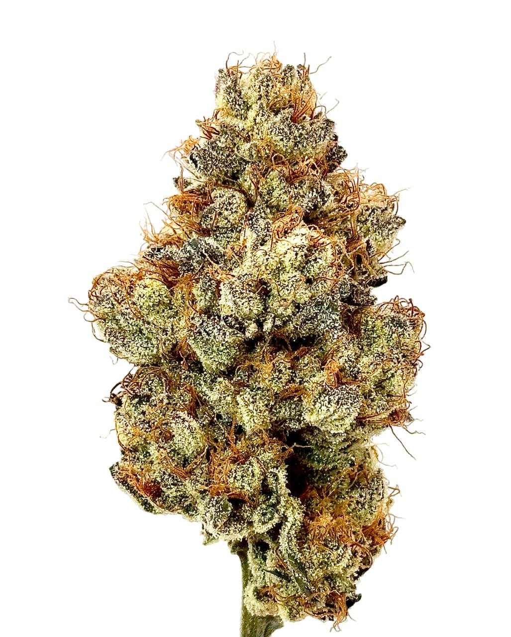 The buds are a classic light-green hue and sport a shimmering coat of dense, sticky trichomes, interspersed with bright orange hairs. The Buds themselves are moderately chunky with a very slight sponginess to them.
