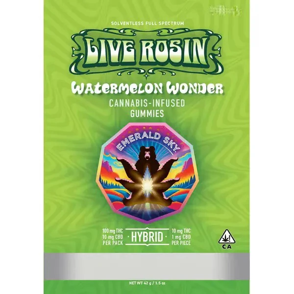 Experience the peak of purity and flavor with Watermelon Wonder Live Rosin Gummies by Emerald Sky. These top-tier edibles are infused with premium Live Rosin, a solventless extract produced using only ice, water, heat, and pressure. This meticulous proces