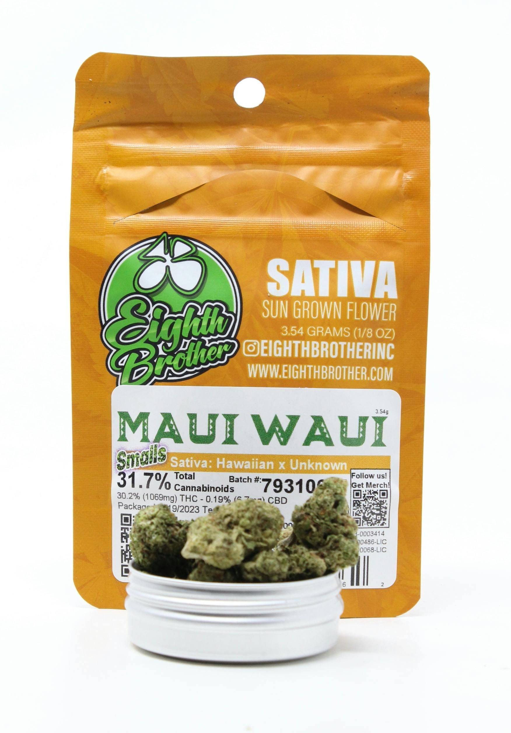 Transport your senses to a tropical escape with Eighth Brother Maui Waui Smalls 3.5g, a flavorful cannabis flower that captures the essence of a classic island strain in a convenient, value-driven format. Cultivated by Eighth Brother, this smalls offering features compact, well-cured buds that maintain the same potency and terpene profile as larger flowers, delivering a consistent and enjoyable experience in every session.