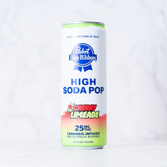 Sweet meets citrus in Pabst Cherry Limeade High Soda—this 4-pack delivers bold cherry flavor, zesty lime twist, and a smooth 25mg infusion for a refreshing, uplifting cannabis beverage experience.