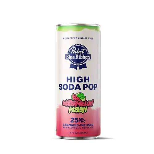 Juicy and refreshing, Pabst Watermelon Melon High Soda blends ripe watermelon with sweet melon notes, delivering smooth bubbles, a balanced 25mg infusion, and an easygoing, uplifting cannabis beverage experience.